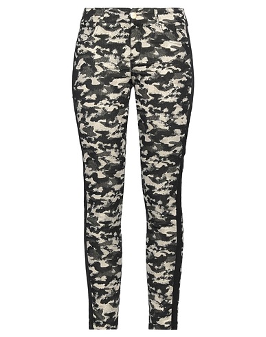tapered pants, jacquard, metallic, stretchy fabric, camouflage-print, side seam stripes, mid rise, regular fit, zipper fastening, 1 button, hand wash or dry clean, do not bleach, do not tumble dry
