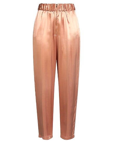 tapered pants, satin, solid color, no appliqués, high waisted, elasticized waist, regular fit, zipper fastening, slit pockets, dry clean, do not bleach, do not tumble dry, this brand runs large