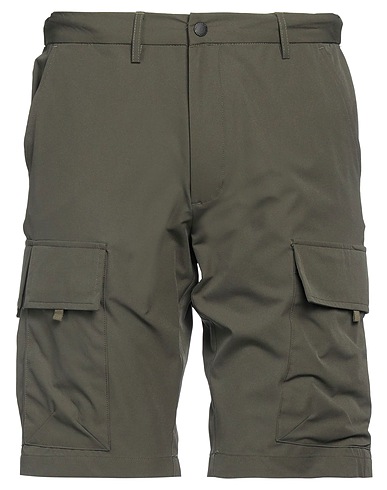 cargo shorts, shell, solid color, no appliqués, mid rise, belt loops, regular fit, snap fastenings, zipper fastening, multipockets, machine wash or dry clean, do not bleach, do not tumble dry