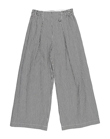 woven, striped, brand logo, darts, elasticized waist, relaxed fit, machine wash or dry clean, do not bleach, do not tumble dry