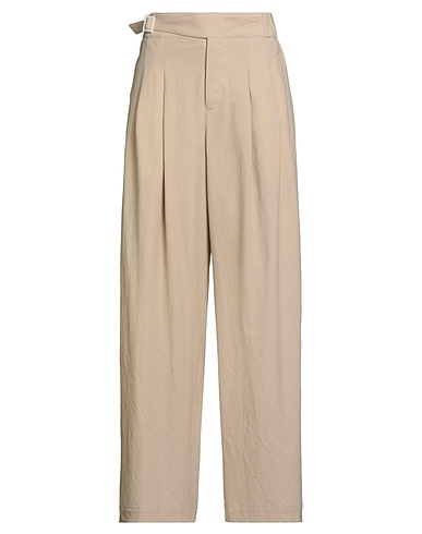 wide-leg pants, crepe, solid color, no appliqués, high waisted, relaxed fit, button fastenings, zipper fastening, multipockets, dry clean, do not bleach, do not tumble dry