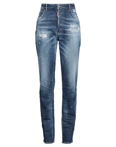 tapered jeans, denim, faded, distressed, solid color, brand logo, medium wash, high waisted, regular fit, button fastenings, multipockets, stretch, machine wash or dry clean, do not bleach, do not tumble dry