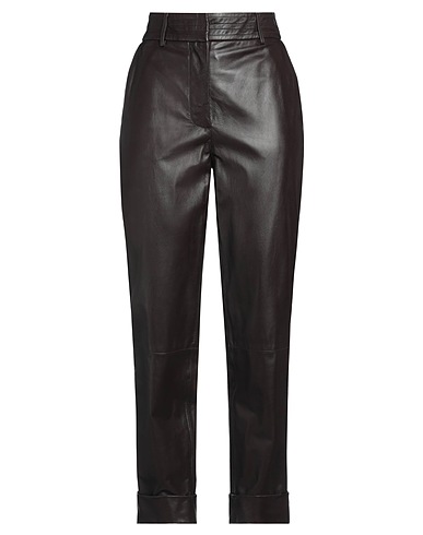 tapered pants, leather, solid color, no appliqués, high waisted, slim fit, 1 button, zipper fastening, folded hem, multipockets, specialist clean or dry clean, do not bleach, do not tumble dry, do not iron, contains non-textile parts of animal origin