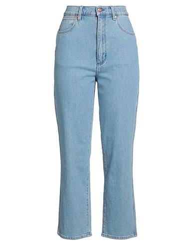 straight-leg jeans, model: wild west, denim, faded, solid color, brand logo, light wash, high waisted, regular fit, zipper fastening, button fastenings, multipockets, machine wash or dry clean, do not bleach, tumble dry