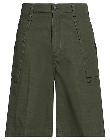 bermuda shorts, woven, solid color, brand logo, low-crotch, zipper fastening, 1 button, multipockets, machine wash or dry clean, do not bleach, do not tumble dry