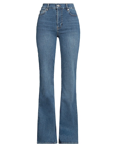 flared jeans, denim, faded, solid color, no appliqués, medium wash, mid rise, regular fit, zipper fastening, button fastenings, multipockets, stretch, machine wash, do not bleach, do not tumble dry