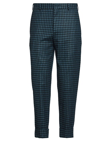 casual pants, flannel, checked, no appliqués, high waisted, tapered leg, regular fit, hook fastenings, zipper fastening, folded hem, slit pockets, welt pockets, machine wash, do not bleach, do not tumble dry