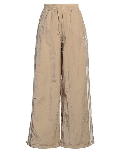 track pants, shell, solid color with appliqués, side seam stripes, brand logo, high waisted, elasticized waist, relaxed fit, drawstring hem, multipockets, machine wash or dry clean, do not bleach, tumble dry, style, comfort and performance – this piece is equally suited to workouts and activities outdoors
