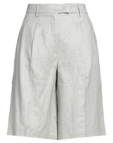 bermuda shorts, woven, metallic, solid color, darts, high waisted, belt loops, regular fit, zipper fastening, hook fastenings, multipockets, machine wash or dry clean, do not bleach, do not tumble dry