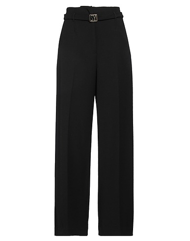 wide-leg pants, crepe, solid color, belt, high waisted, relaxed fit, zipper fastening, hook fastenings, multipockets, stretch, dry clean, do not tumble dry