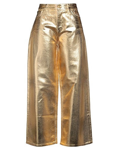wide-leg jeans, denim, gold-tone, solid color, brand logo, colored wash, high waisted, regular fit, 1 button, zipper fastening, multipockets, dry clean, do not bleach, do not tumble dry, do not iron