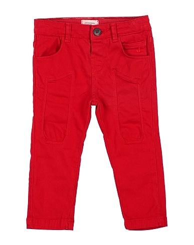 gabardine, stretchy fabric, solid color, brand logo, zipper fastening, button fastenings, five pockets, hand wash or dry clean, do not bleach, do not tumble dry