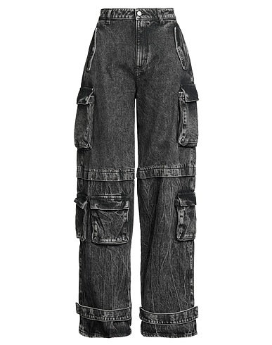 cargo jeans, denim, faded, solid color, brand logo, colored wash, high waisted, belt loops, relaxed fit, 1 button, zipper fastening, pockets, machine wash, do not bleach, do not tumble dry
