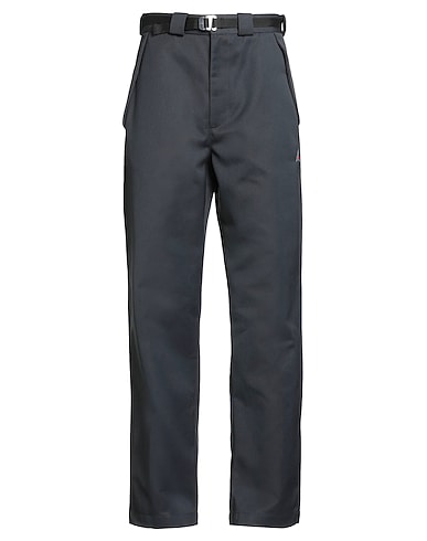 casual pants, gabardine, solid color, belt, embroidered logo, high waisted, belt loops, wide leg, regular fit, zipper fastening, multipockets, machine wash or dry clean, do not bleach, tumble dry