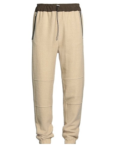 casual pants, bouclé, two-tone, knitted trims, low-crotch, tapered leg, relaxed fit, drawstring fastening, elasticated hem, zipper pocket, dry clean, do not bleach, do not tumble dry, do not iron