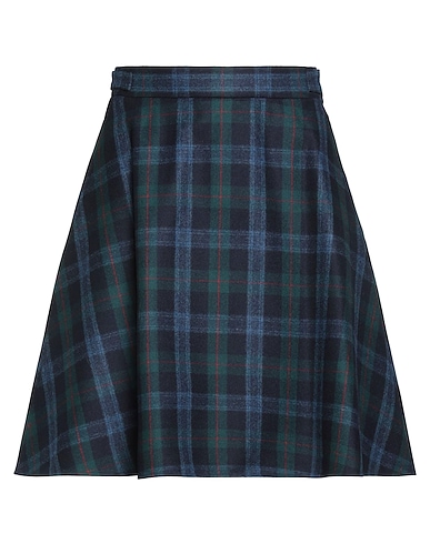 flared skirt, flannel, tartan pattern, brand logo, fully lined, zipper fastening, hook fastenings, slit pockets, dry clean, do not bleach, do not tumble dry, contains non-textile parts of animal origin