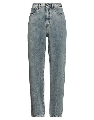 straight-leg jeans, denim, faded, solid color, embroidered logo, medium wash, high waisted, regular fit, tie fastening, zipper fastening, multipockets, machine wash or dry clean, do not bleach, do not tumble dry, this brand runs large