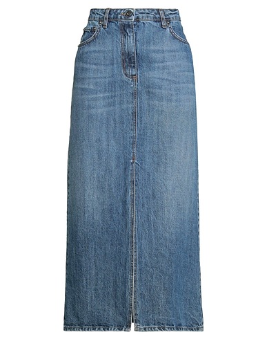 pencil skirt, denim, faded, solid color, brand logo, medium wash, unlined, zipper fastening, button fastenings, front slit, multipockets, machine wash, do not bleach, tumble dry