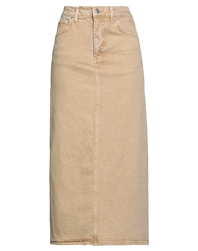 flared skirt, denim, faded, solid color, no appliqués, colored wash, zipper fastening, 1 button, multipockets, dry clean, do not bleach, do not tumble dry