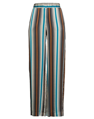 wide-leg pants, satin, striped, brand logo, high waisted, elasticized waist, relaxed fit, slit pockets, machine wash or dry clean, do not bleach, do not tumble dry