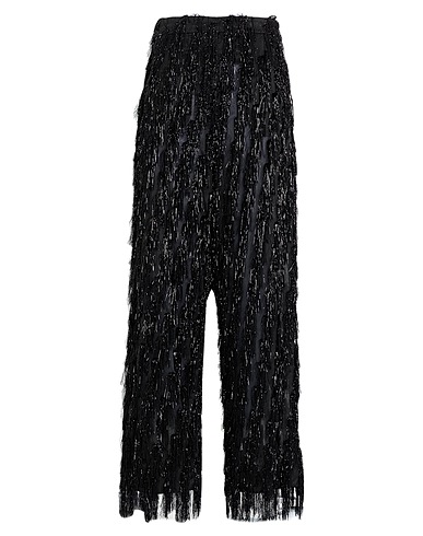wide-leg pants, crepe, metallic, solid color, fringes, high waisted, regular fit, zipper fastening, hook fastenings, slit pockets, dry clean, do not bleach, do not tumble dry, do not iron, this brand runs large