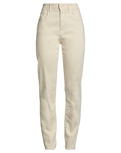 tapered jeans, denim, stretchy fabric, solid color, embroidered logo, colored wash, high waisted, slim fit, zipper fastening, pockets, machine wash, do not bleach, do not tumble dry