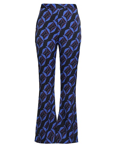 flared pants, crepe, multicolor, no appliqués, high waisted, regular fit, side slit hemline, welt pockets, slit pockets, dry clean, do not bleach, do not tumble dry, do not iron, this brand runs large