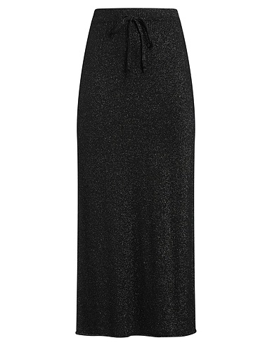 flared skirt, knitted, metallic, lightweight knit, solid color, no appliqués, drawstring waist, unlined, hand wash or dry clean, do not bleach, do not tumble dry