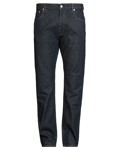 straight-leg jeans, denim, solid color, brand logo, dark wash, mid rise, regular fit, zipper fastening, 1 button, five pockets, machine wash, do not bleach, do not tumble dry, this brand runs large