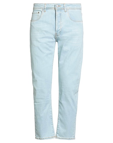 straight-leg jeans, denim, stretchy fabric, solid color, brand logo, light wash, mid rise, belt loops, regular fit, concealed button fastenings, five pockets, machine wash or dry clean, do not bleach, do not tumble dry