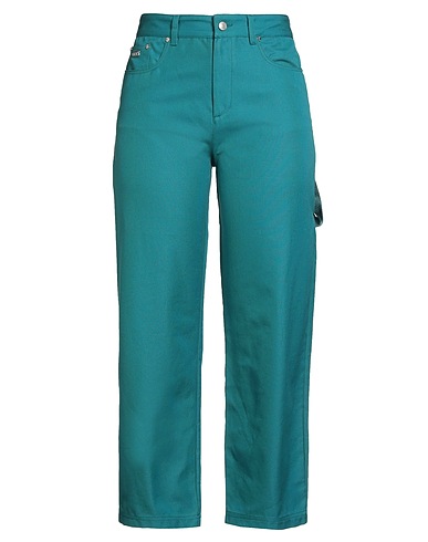 tapered pants, canvas, solid color, leather trims, grosgrain trims, high waisted, belt loops, regular fit, zipper fastening, 1 button, multipockets, machine wash, do not bleach, do not tumble dry, contains non-textile parts of animal origin