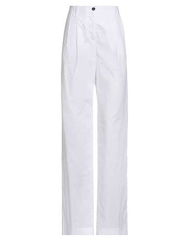 wide-leg pants, poplin, solid color, darts, high waisted, regular fit, button fastenings, zipper fastening, welt pockets, machine wash or dry clean, do not bleach, do not tumble dry, this brand runs large