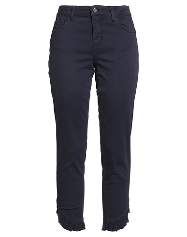 tapered jeans, denim, stretchy fabric, solid color, brand logo, ruffles, colored wash, mid rise, belt loops, regular fit, zipper fastening, 1 button, multipockets, machine wash, do not bleach, do not tumble dry