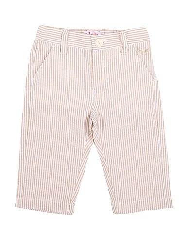woven, striped, embroidered logo, belt loops, 1 button, slit pockets, welt pocket, machine wash or dry clean, do not bleach, do not tumble dry