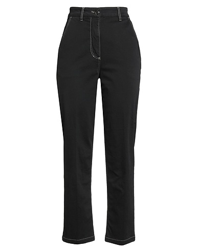 tapered pants, twill, stretchy fabric, solid color, brand logo, high waisted, regular fit, zipper fastening, 1 button, slit pockets, decorative pockets, machine wash or dry clean, do not bleach, do not tumble dry