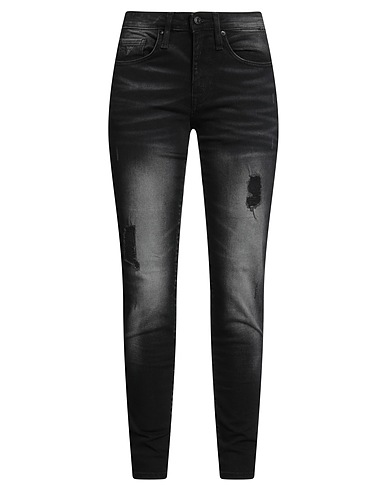 skinny jeans, denim, distressed, faded, stretchy fabric, solid color, brand logo, colored wash, mid rise, belt loops, slim fit, zipper fastening, 1 button, five pockets, machine wash, do not bleach, do not tumble dry