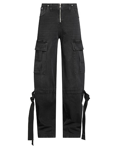 cargo jeans, denim, solid color, brand logo, colored wash, low-crotch, regular fit, zipper fastening, pockets, machine wash or dry clean, do not bleach, do not tumble dry, this brand runs small