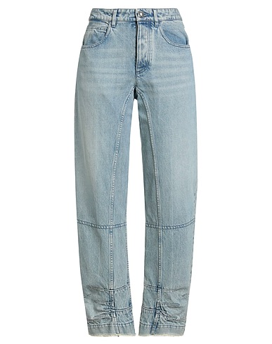 tapered jeans, denim, solid color, brand logo, light wash, high waisted, belt loops, regular fit, button fastenings, five pockets, machine wash or dry clean, do not bleach, do not tumble dry, contains non-textile parts of animal origin, this brand runs large