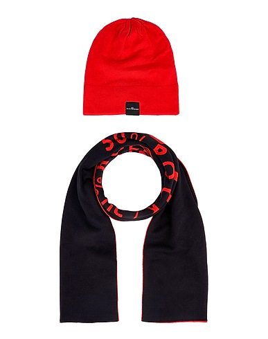 hat set, knitted, lightweight knit, two-tone, brand logo