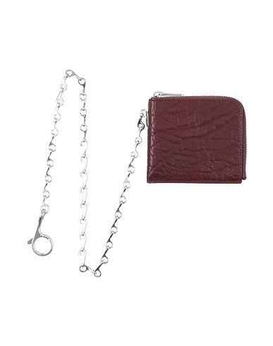 wallet, pebbled-leather, solid color, brand logo, zipper fastening, card slots, contains non-textile parts of animal origin