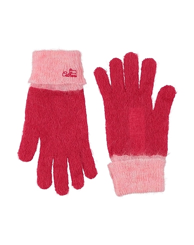 gloves, knitted, lightweight knit, two-tone, embroidered logo, hand wash or dry clean, do not bleach, do not tumble dry
