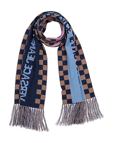 scarf, knitted, lightweight knit, checked, brand logo, machine wash or dry clean, do not bleach, do not tumble dry