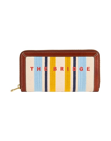 wallet, gabardine, striped, embroidered, leather trims, internal compartments, zipper fastening, card slots, internal zip pocket, contains non-textile parts of animal origin