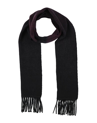 scarf, knitted, medium-weight knit, two-tone, fringes, dry clean, do not bleach, do not tumble dry