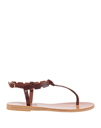 thong sandals, leather, solid color, no appliqués, buckle-fastening ankle strap, round toe, flat, leather sole, leather lining, contains non-textile parts of animal origin