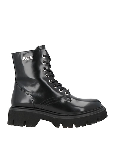 combat boots, glossed-leather, solid color, brand logo, leather lining, lace-up, round toe, square heel, rubber heel, lug sole, contains non-textile parts of animal origin