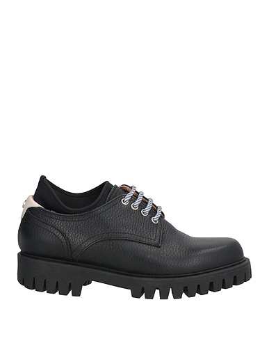 lace-up shoes, pebbled-leather, jersey, solid color, brand logo, leather lining, round toe, low heel, rubber heel, lug sole, contains non-textile parts of animal origin