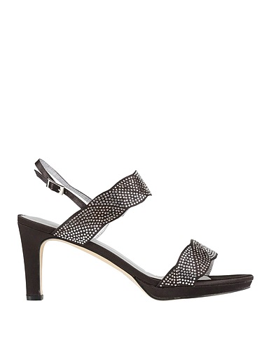 ankle strap sandals, satin, solid color with appliqués, crystals, fully lined, round toe, cone heel, rubber sole