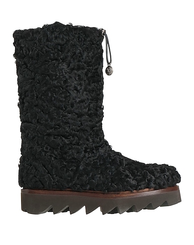 padded boots, shearling, solid color, no appliqués, leather lining, round toe, wedge heel, rubber wedge, rubber cleated sole, contains non-textile parts of animal origin