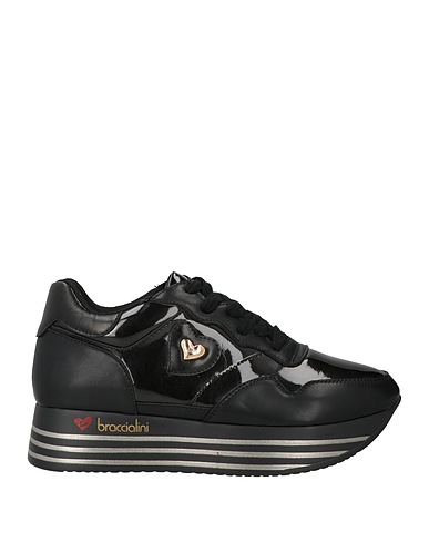 low-top sneakers, synthetic material, patent-effect, solid color with appliqués, brand logo, leather lining, lace-up, round toe, rubber sole, contains non-textile parts of animal origin